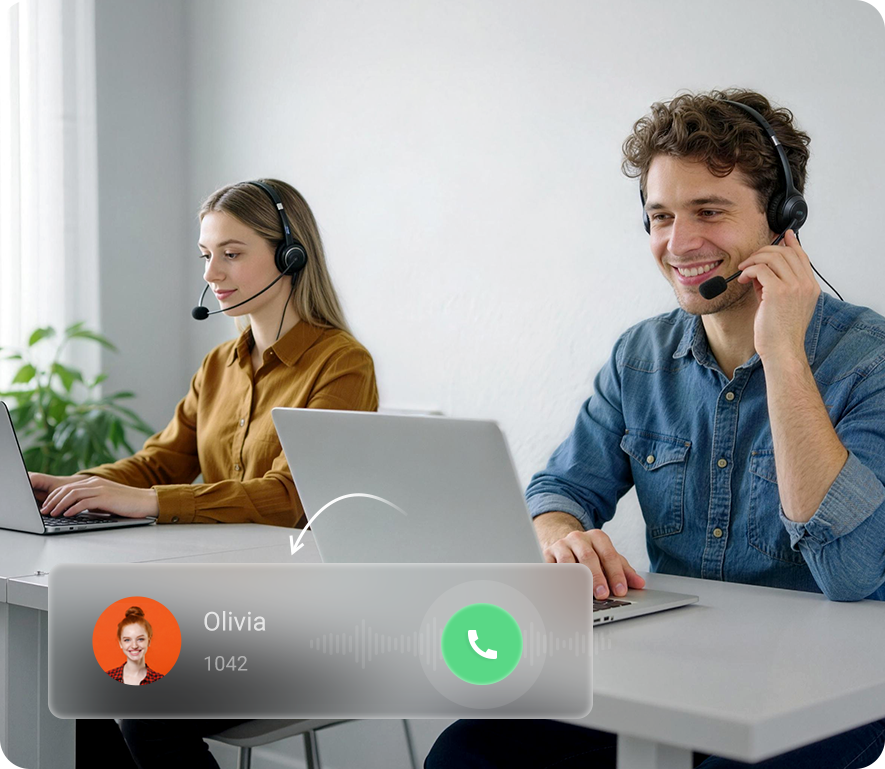 Gli strumenti di intelligenza artificiale integrati supportano il tuo team con la trascrizione automatica delle chiamate,il riepilogo delle chiamate e il traduttore vocale naturale, garantendo l'acquisizione di dettagli importanti.